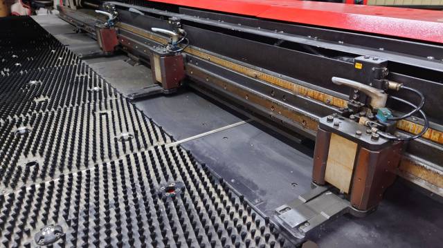 AC Servo Direct Twin Drive, Max Sheet Size:1270*2500mm(One Clamp), 20T, 49st, 2A/I, NC:AMNC-F, Air Blow, Brush table
